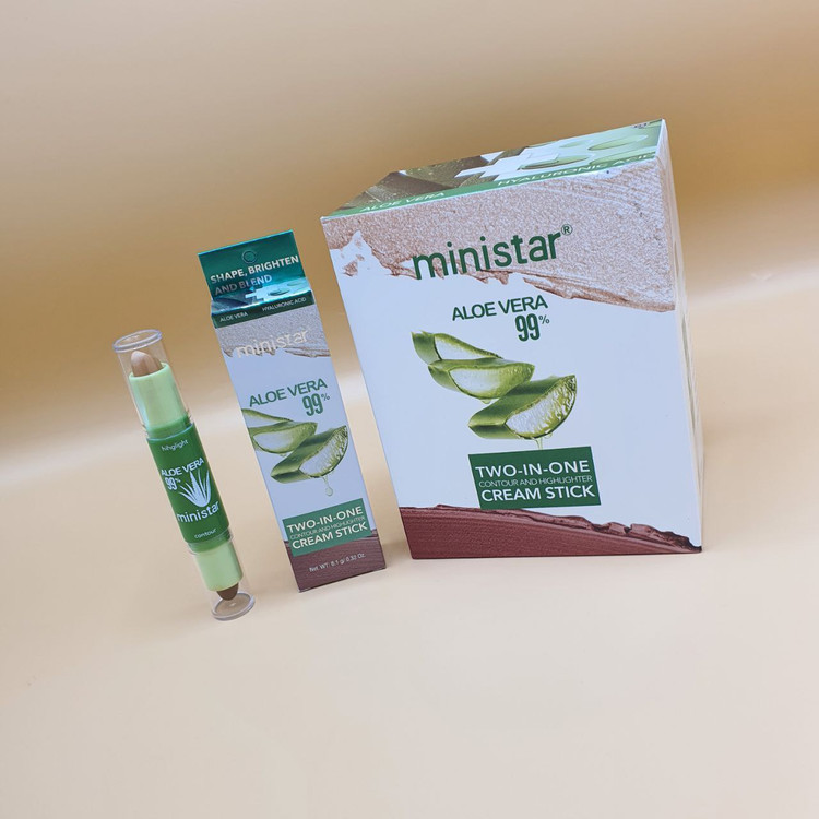 کانتور و هایلایتر دو سر مینیستار ministar برای حالت دهی به صورت و فرم دهی به صورت مورد استفاده قرار میگیرد این محصول دارای کیفیت بالایی بوده و یک سری تیره و یک سری روشن دارد شما میتوانید به واسطه این محصول که حاوی ۹۹ درصد آلوئه ورا بوده و به راحتی فید میشود و شما میتوانید به واسطه استفاده از این محصول بهترین فرم از صورت خود را در میکاپ ایجاد کرده و زیبای بیشتری را در میکاپ به خود هدیه دهید.