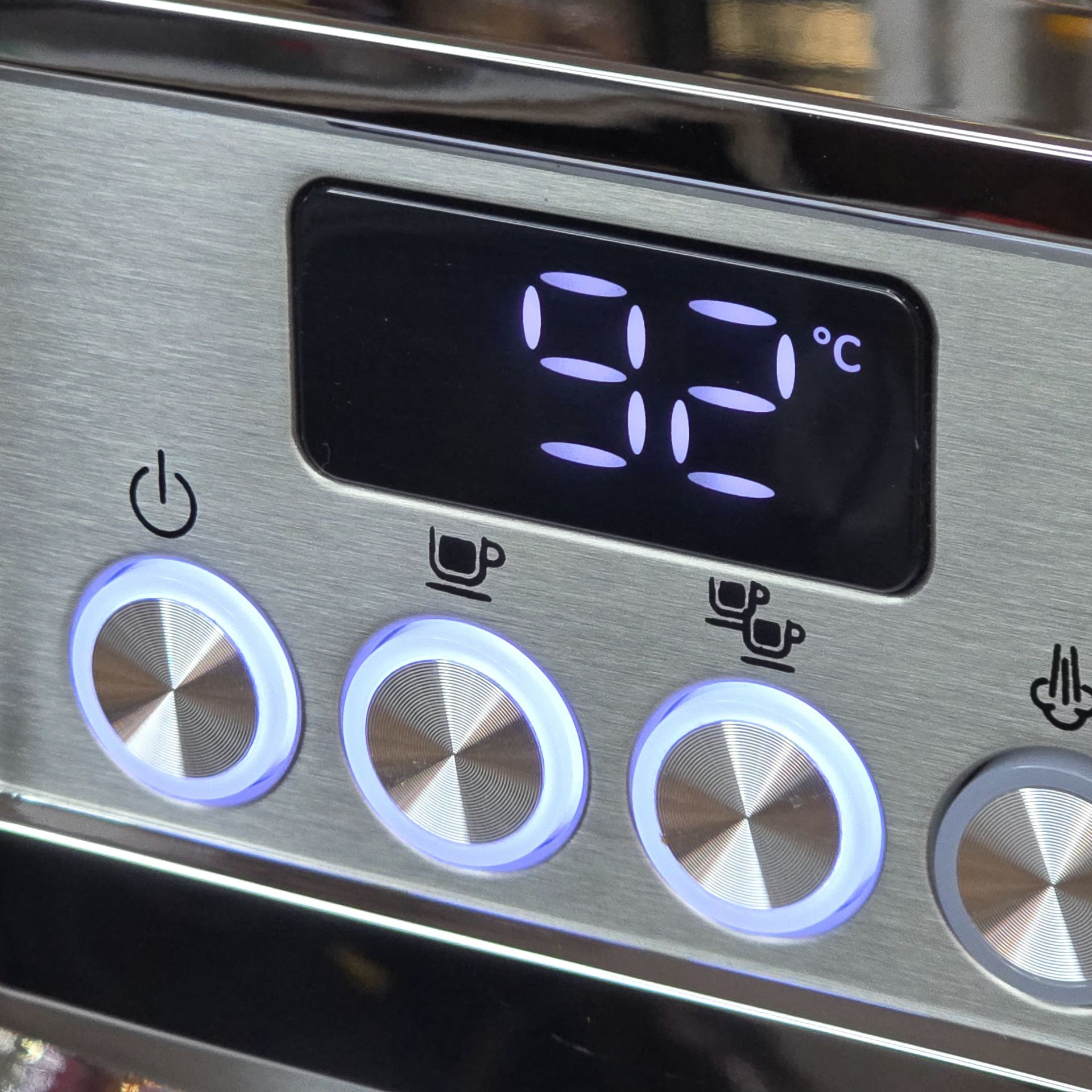 دکمه ها همگی به دو حالت چشمک زن و چراغ ثابت در می آیند که چراغ ثابت نماینگر آماده بودن و چراغ چشمک زن نماینگر در حال آماده سازی دستگاه است این دستگاه در کنار دکمه های نام برده شامل یک نمایشگر دیجیتالی میباشد که میزان دمای آب در مخزن دستگاه اسپرسو را نشان می دهد.