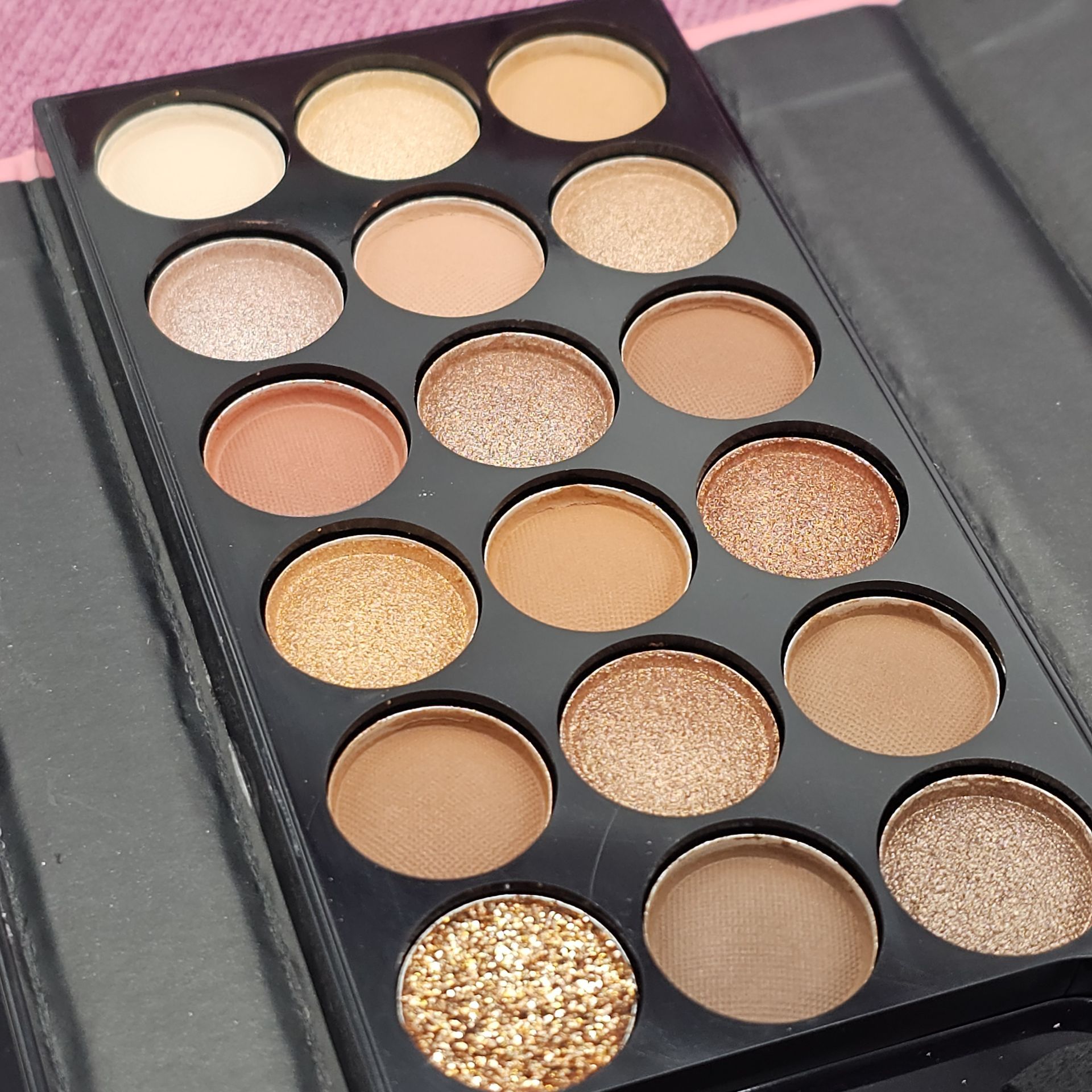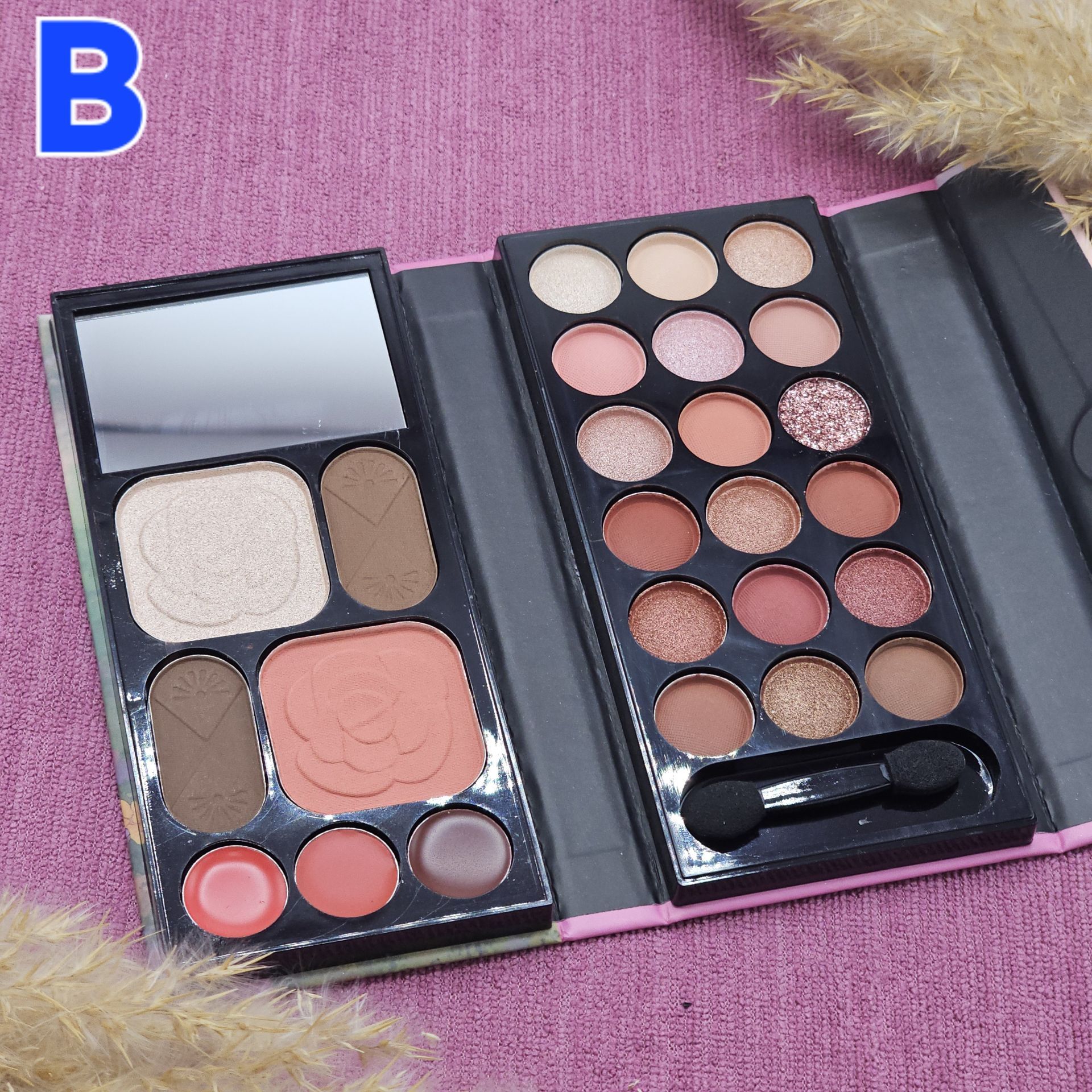 18 رنگ سایه 2 رنگ روژگونه 2 رنگ سایه ابرو 3 رنگ رژلب و 1 رنگ هایلایتر