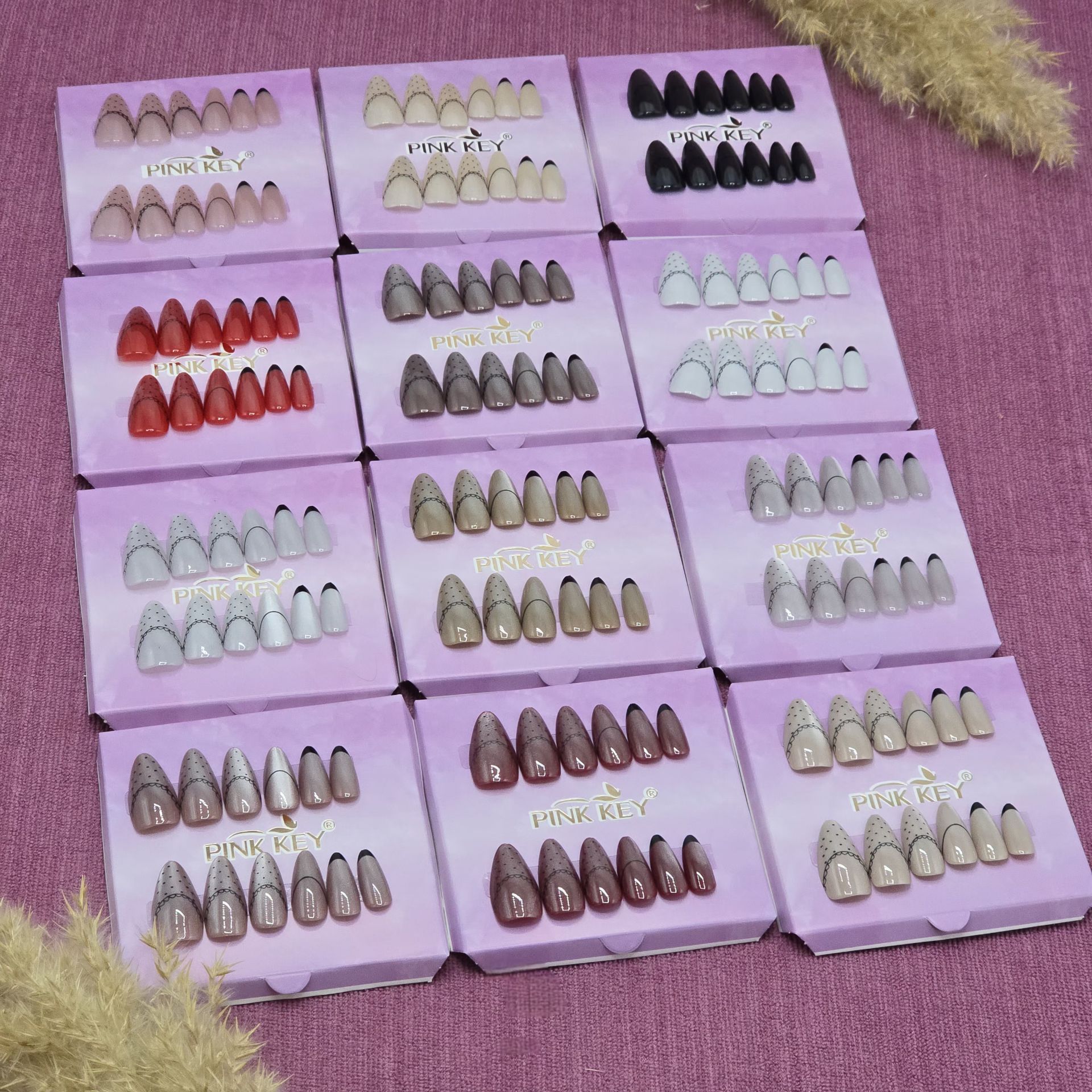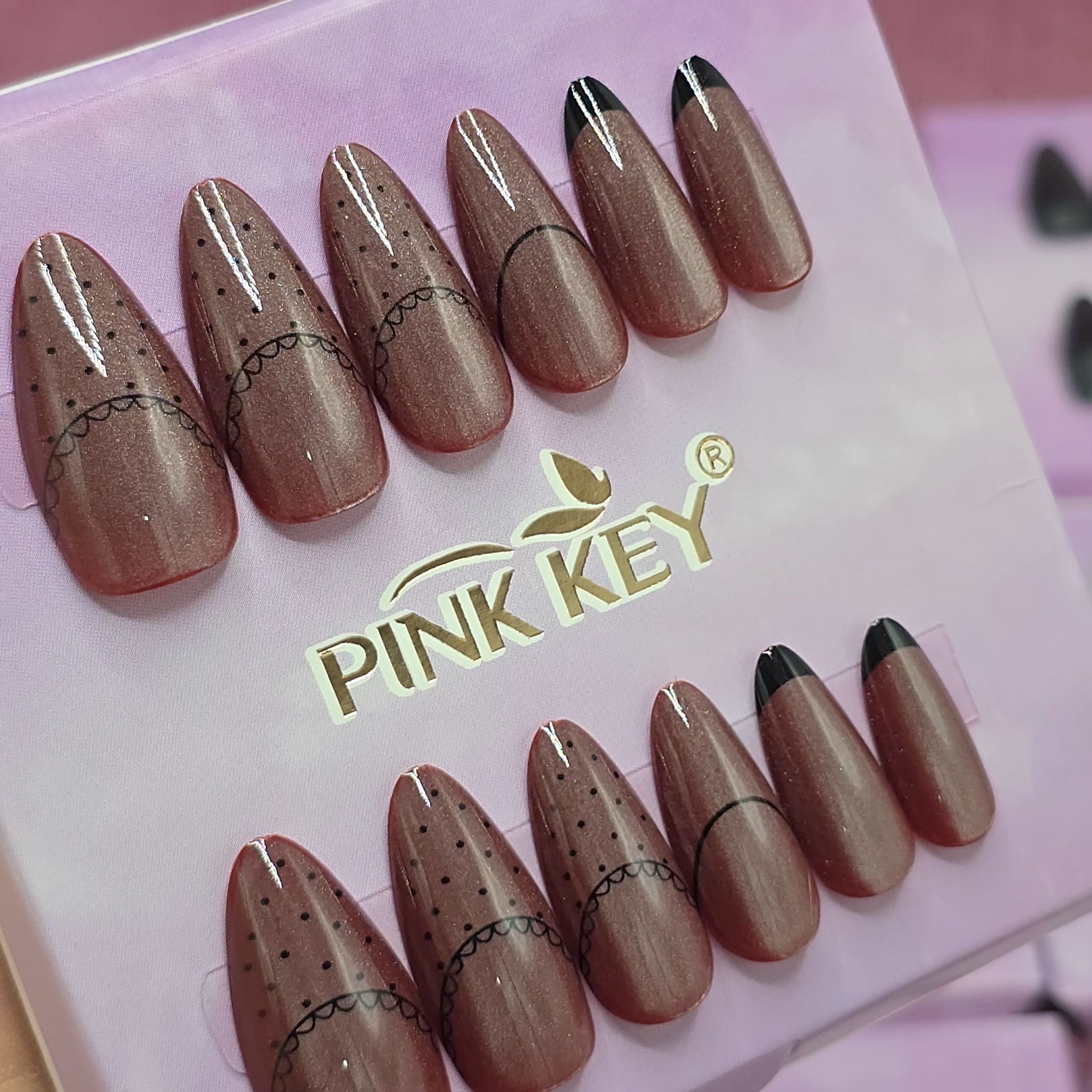 این مدل ناخن مصنوعی شاین کمر مشکی کله قندی از برند PINK KEY واقعاً یکی از شیکترین و خوشکلترین گزینههاست،